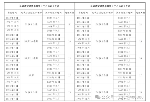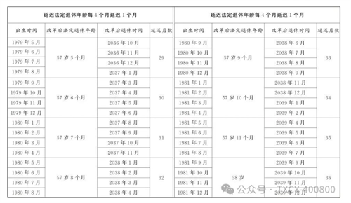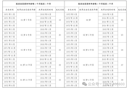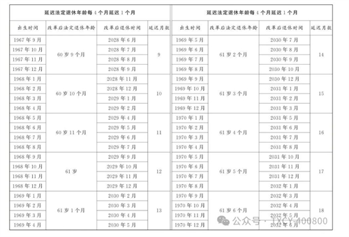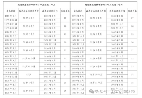 第一條?從2025年1月1日起,男職工和原法定退休年齡為五十五周歲的女職工,法定退休年齡每四個(gè)月延遲一個(gè)月,分別逐步延遲至六十三周歲和五十八周歲;原法定退休年齡為五十周歲的女職工,法定退休年齡每二個(gè)月延遲一個(gè)月,逐步延遲至五十五周歲。國(guó)家另有規(guī)定的,從其規(guī)定。