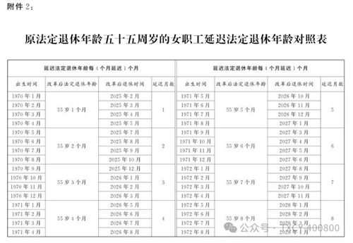 2.原法定退休年齡五十五周歲的女職工延遲法定退休年齡對(duì)照表